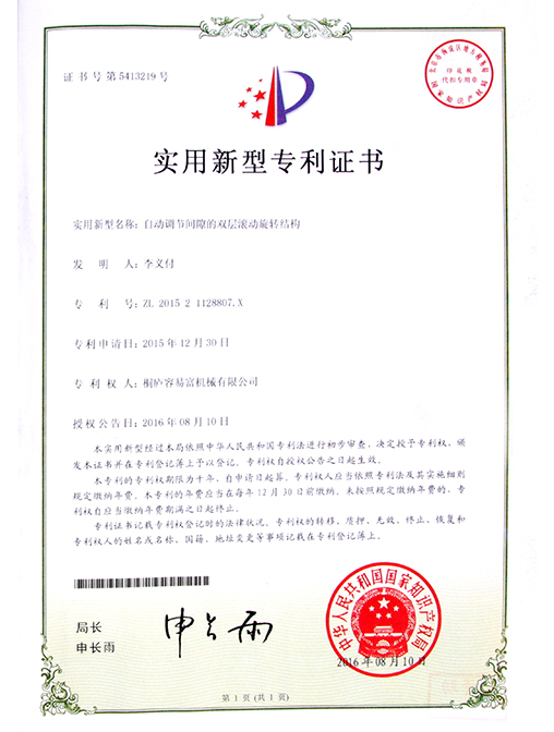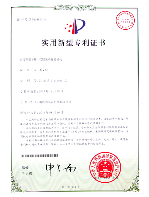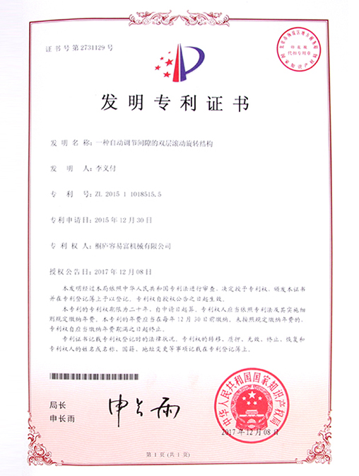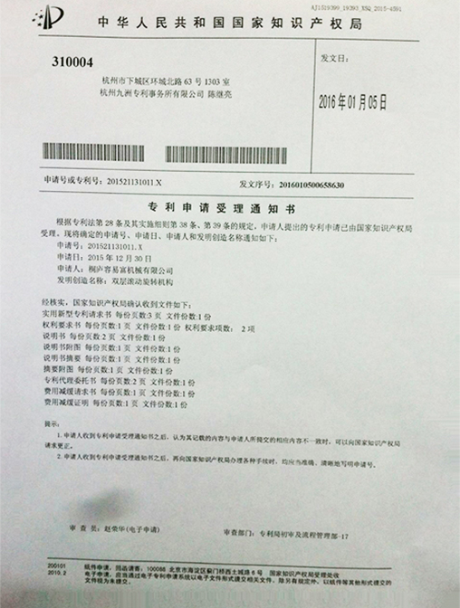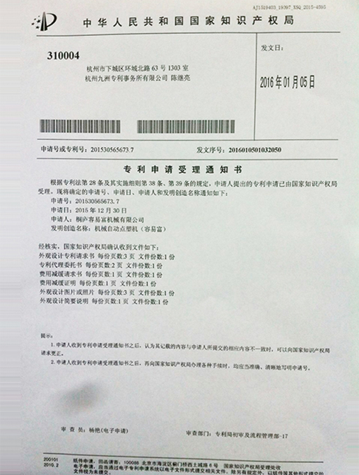 已經(jīng)獲得十多項(xiàng)發(fā)明專(zhuān)利和二十多項(xiàng)實(shí)用新型和外觀(guān)專(zhuān)利,所有產(chǎn)品都是經(jīng)過(guò)高精密的設(shè)計(jì)和制造,以確保機(jī)器可以平穩(wěn)的運(yùn)行。